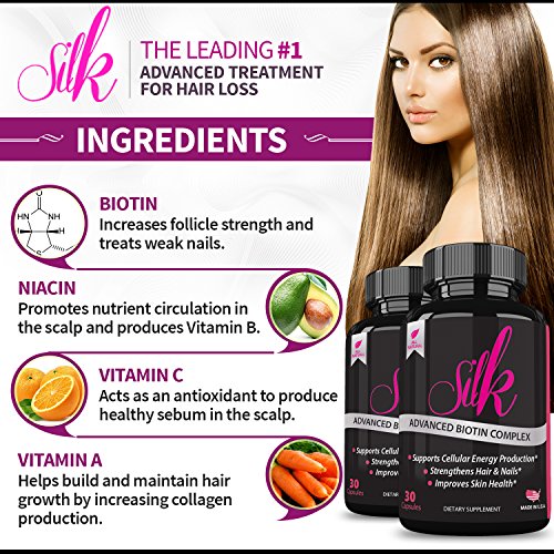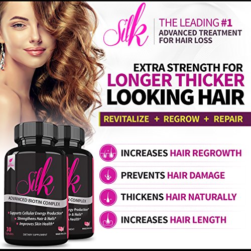 -. Feature : BENEFITS OF SILK- Promotes the growth of long, strong and beautiful hair. Offers results quickly. Most women reported a noticeable change in just 3 weeks. Boost Hair's density and offer nourishment to the scalp. / THE ROOT ISSUE- NUTRIENT DEFICIENCIES - We believe that the majority of issues in our bodies can be solved using nature's perfect ingredients. In today's world, it is very difficult to consume all the nutrients you need from food alone. Help supplement the nutrients that may be missing from your diet to promote healthy hair growth and a natural volume and vibrance you can be proud of. / SKIN AND NAILS BENEFIT TOO! This product isn't just for your hair! Most customers find that while it may take a few weeks of consistent use for significant changes in your hair to be visible, the benefits to your skin and nails will be much faster. You'll enjoy nourished, moisturized skin and healthier, stronger nails while your hair is growing faster, fuller, and healthier from the roots! / USA MADE & INDEPENDENTLY TESTED - To confirm strength and purity, you can even see for yourself in the test results provided / RISK FREE - Yep, you're even covered by our 'No Change, No Charge' 100% money back guarantee. Try Silk today, we think you'll love it