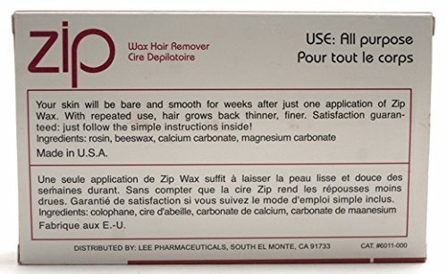 Your skin will be bare and smooth for weeks after just one application of zip wax. With repeated use, hair grows back thinner, finer. Instructions inside.Feature