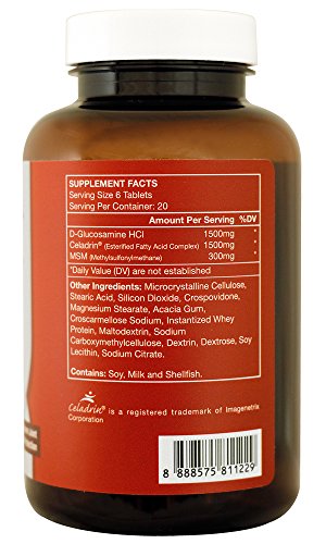 Studio : Nature's Farm Publisher : Nature's Farm Binding : Health and Beauty Product Description Experiencing unbearable pain in your joints? Nature's Farm® Joint with Celadrin® is a revolutionary breakthrough joint formula that combines the synergistic effects of Celadrin®, glucosamine and M.S.M. One of the newest and most effective natural anti-inflammatory discoveries, Celadrin® is a proprietary, clinically tested and patented blend of special fatty acids that works extensively for joint lubrication, promoting flexibility and healthy joint function. With the added Celadrin®, as well as other highly potent ingredients, Nature's Farm® Joint with Celadrin® works in a unique way to maximize long-term joint wellness and restore good joint functioning, working through the entire joint and addressing both causation and symptoms of joint-related problems. Suggested Usage: As a dietary supplement, take 3 tablets 2 times daily after meals. Free of: Wheat, Corn, Milk, Egg, Gluten, Sugar, Starch, Artificial Colours Preservatives. Made in U.S.A NOTE: Keep Our Of Reach Of Children. Store In A Cool Dry Place. 0
