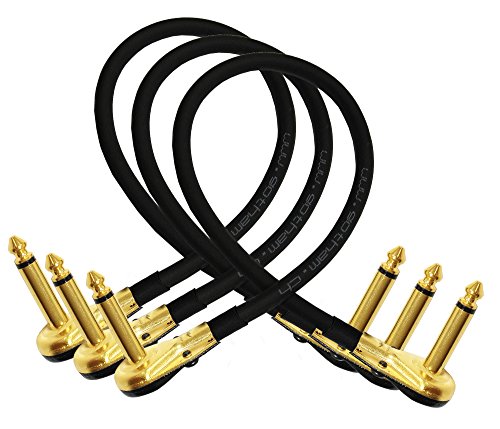 3 Units - Gotham GAC-1 - 15 Inch - Ultra-Flexible Instrument Effects Patch Cable With Gold 1/4 Inch (6.35mm) Low-Profile, Right Angled TS Connectors
