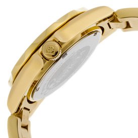 -. Feature : Swiss quartz movement / Mineral crystal; 18k gold ion-plated stainless steel case and bracelet / Magnified date window at 3:00 / Gold tone dial with gold tone hands and flowers with encrusted white crystals; luminous; unidirectional 18k gold ion-plated stainless steel bezel with gold tone top ring and black Arabic numerals / Water resistant to 660 feet (200 M): suitable for recreational scuba diving