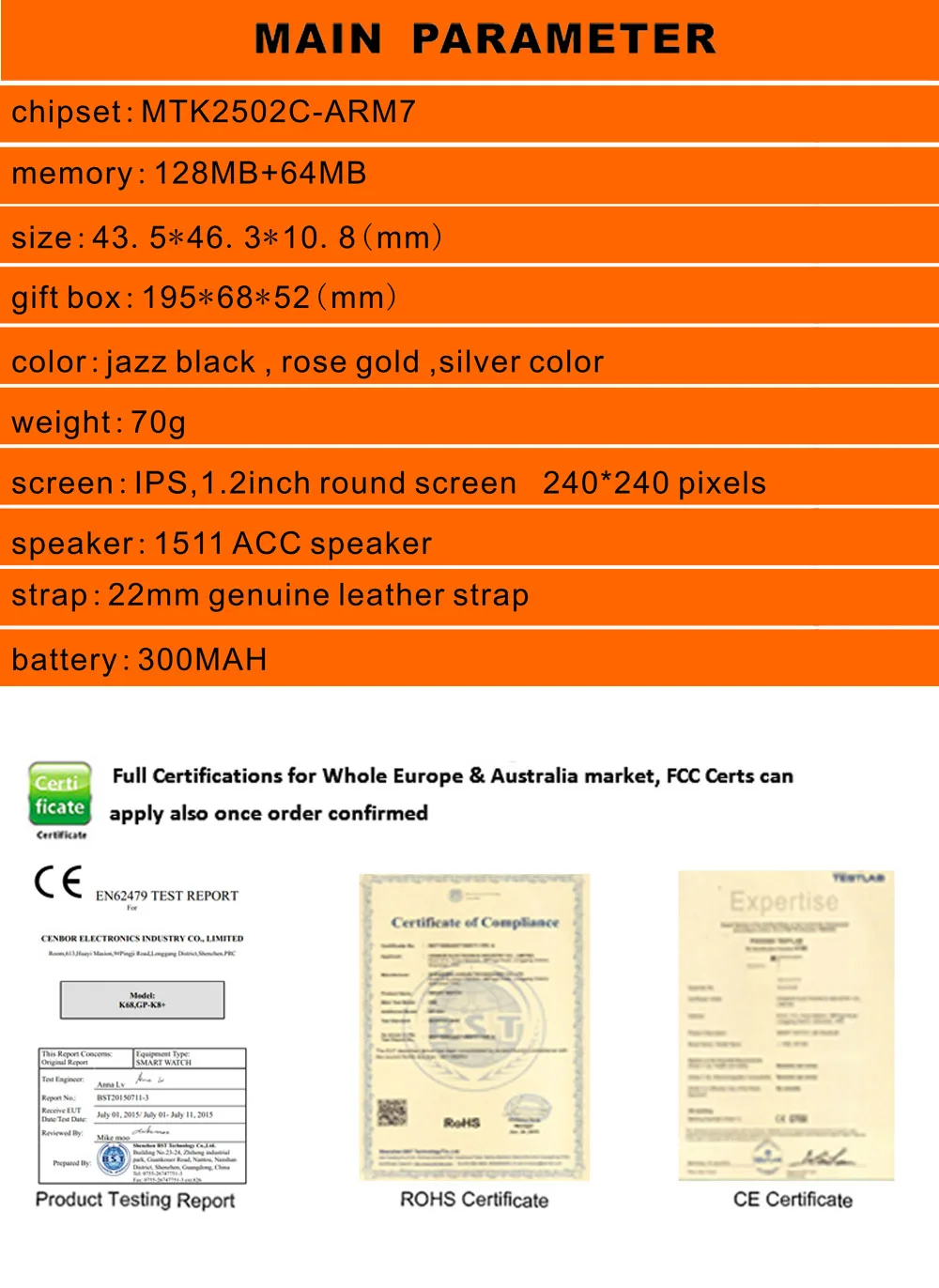 Function:Passometer,World Time,Sleep Tracker,Big Three Needles,Small Second,Calculators,Permanent Calendar,24 hour instruction,Message Reminder,Interactive Music,Mood Tracker,Calendar,Dial Call,Power Reserve,Push Message,Alarm Clock,Remote Control,Month,Answer Call,Week,Call Reminder