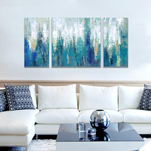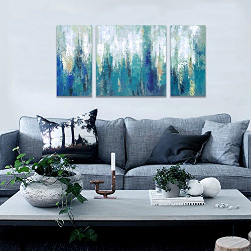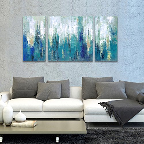 cubism- Canvas Print 3 Panel Blue Abstract Modern Wall Art for Home Decoration ,Ready to Hang! SIZE:10x20inchx2pcs,20x20inchx1pc