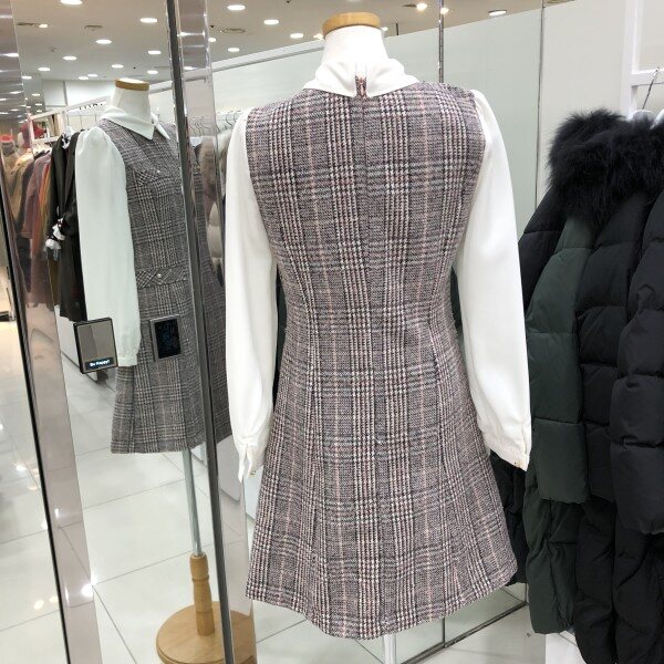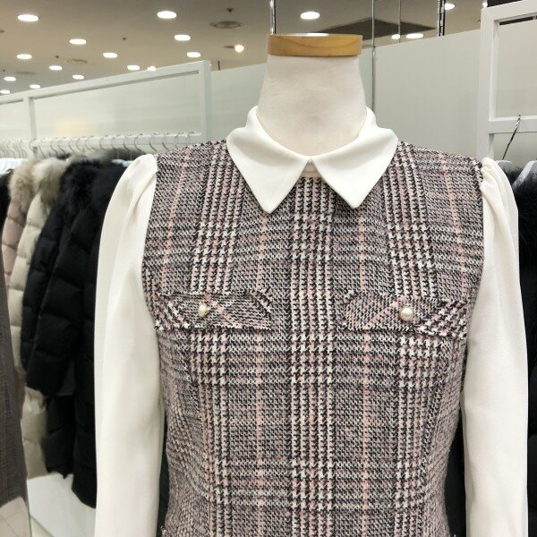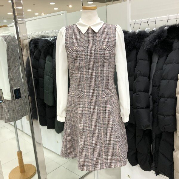 카라소매배색체크원피스장장스타일의 체크원피스입니다. 카라가 있어 따로코디없이 하나만 착용하여도 예쁜스타일입니다. 힐뿐만아니라 단화와 코디하기도 좋은 원피스입니다