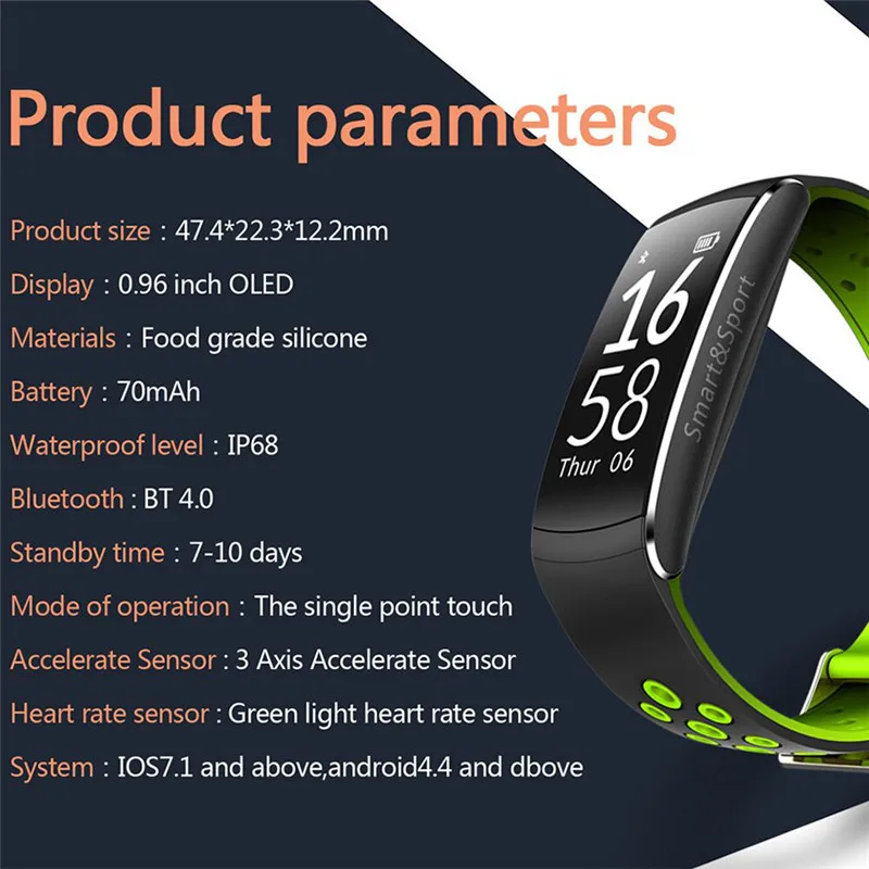 Function:Remote Control,Passometer,Sleep Tracker,Activity Tracker,Fitness Tracker,Push Message,Heart Rate Tracker,Alarm Clock,Social Media Notifications,Message Reminder,Call Reminder
