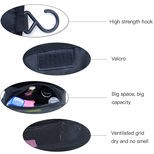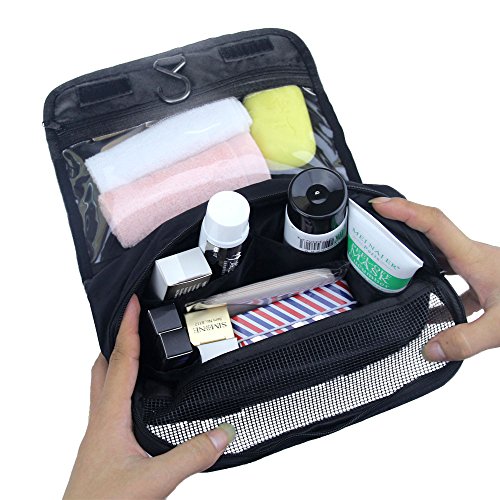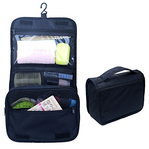- Hanging Travel Organizer: This travel bag has durable hook is convenient for hanging the toiletry bag wherever in the hotel or in the tent for space saving; 3 layers which can be vertically unfolded to Compact Size.er. You can also design your own compartments with adjustable dividers.
