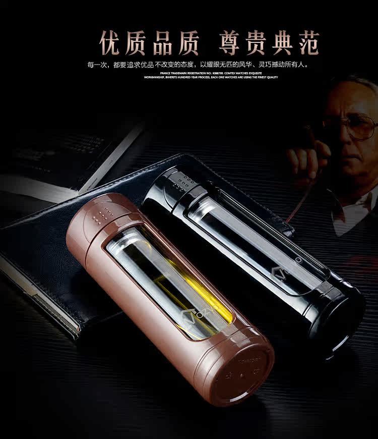玻璃杯双层便携水杯创意带盖过滤办公杯子男女耐热车载茶杯