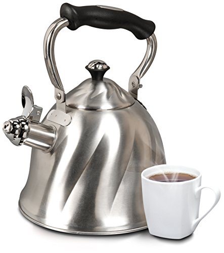Gibson Alderton 2.3 quart Stainless Steel Whistling Tea Kettle, Blue