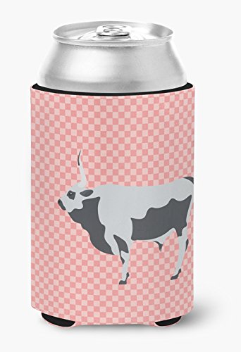 Caroline's Treasures BB7824CC Hungarian Grey Steppe Cow Pink Check Decorative, Can Hugger, Multicolor