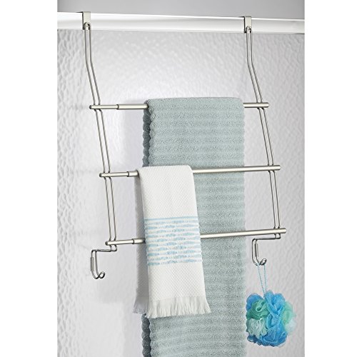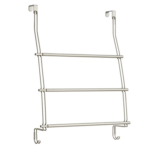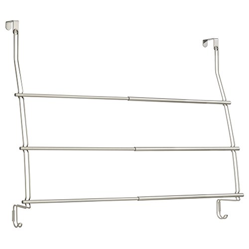 伸縮可能なInterDesign ネオ(Neo) ドア掛けタオルホルダーは大きめのバスタオルを収納するのに便利です。バスローブやお洋服を掛けるのにピッタリなフックも2つ付いています。浴室のドアにかけるだけで簡単に取り付けられます。防錆性金属製。サテン加工。