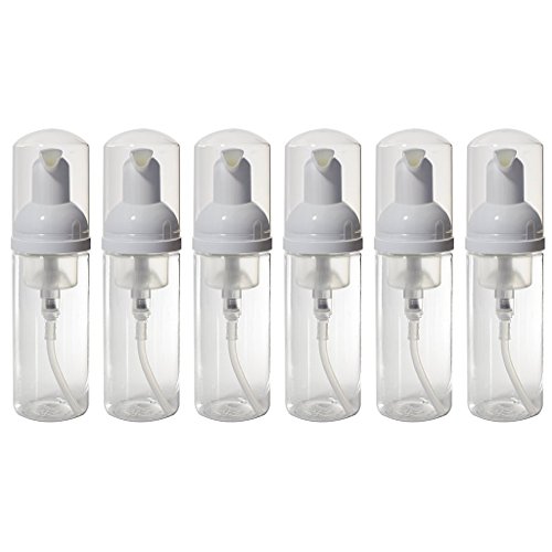 Clear PET Plastic Refillable Travel Foamer Pump Bottle - 1.7 oz (6 Pack) + Travel Bag
