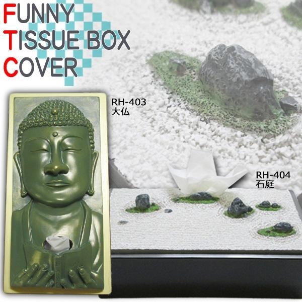 大仏をモチーフにしたティッシュケースと日本庭園のおごそかな雰囲気をそのまま再現したティッシュケースです。