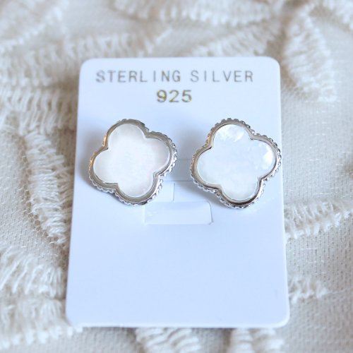 - Title : Sterling Silver Mother of Pearl MOP 1 Motif Alhambra Clover Stud Earrings