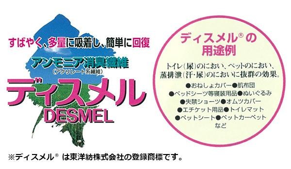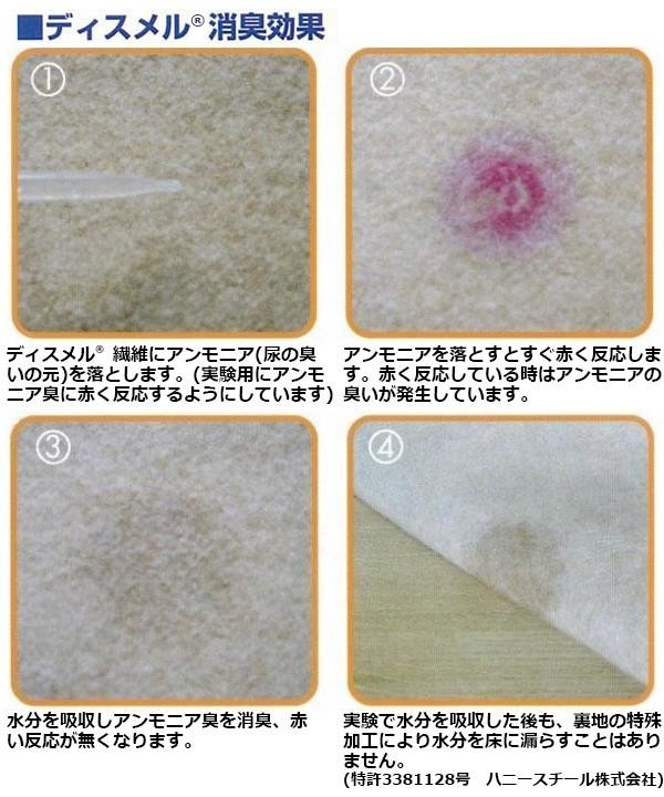 アンモニア臭を吸着・消臭する素材「ディスメル(R)」を使用した、ペット用の介護消臭マットです。おしゃれなキルティングデザインなのでワンちゃんが誤って食べてしまうこともありません。お出かけ先や車の移動時にも便利です。 |