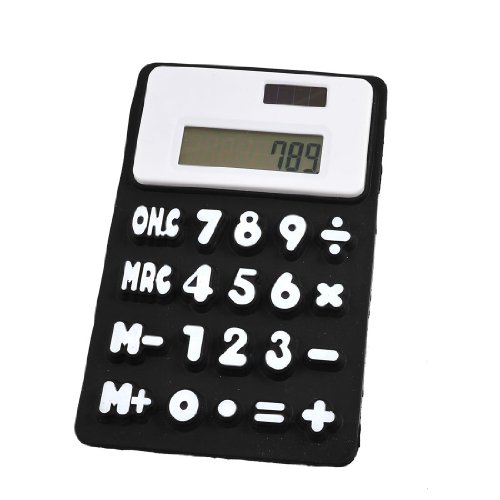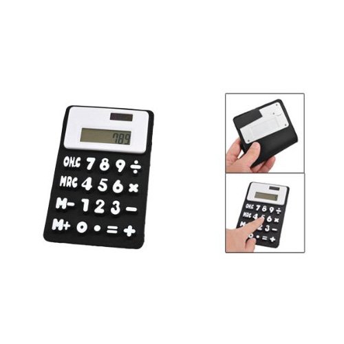 -. Feature : Product Name : Calculator;Powered by : 1 x AG 10 Battery(not included here) / Color : Black, White;Material : Silicone / Digits Number : 8;Size : 15.5 x 9.7 x 0.6cm/ 6.1" x 3.8" x 0.2"(L*W*H) / Weight : 60g / Package Content : 1 x Silicone Calculator