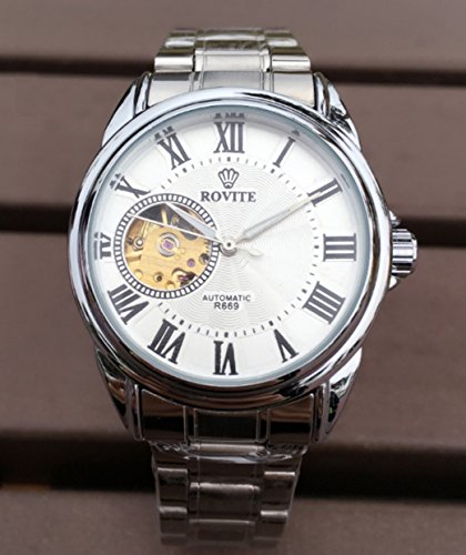 -. Feature : おしゃれで機械式時計の魅力を感じていただけるオープンハート(セミスケルトン)の時計です。 / 裏面はシースルーバック(バックスケルトン)のため、表からも裏からも機械式時計のメカニカルな構造や動きを見ることができます。 / 機械式時計を好きの方はもちろん、ビジネスシーンでもちょっとおしゃれなと時計として似合います / 厚さ14mm / ケース幅 : 38mm / バンド幅 : 18mm / 腕回り :長さ 230mm / 重量 : 110g / ブランド : ROVITE / 駆動方式 : 自動巻 / ケース : ステンレス / 風防 : ミネラル高強度ガラス / 防水 : 生活防水 3ATM / バンド : ステンレス / その他特徴 : オープンハート、シースルーバック、ルミナス(時針、分針) / 生産国 : 中国