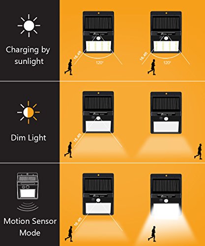 【Automatic Lighting】Auto on at night / auto off at sunrise; Bright light activates when sensing motion at night. 2 lighting modes: ① dim at dusk + off at sunrise; ②brighter when motion detected at dusk.