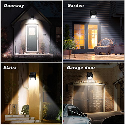 【Waterproof and Durable】IP65 Water resistant and heat-resistant, great outdoor security night light for wall, garden, porch, patio, pathway, stairway, driveway, etc; Using high-quality plastic and LED lights. No screen flash, No radiation. The service life of solar panels is 5 years, and the LED lights can be used for 50000 hours.