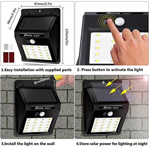 Solar Lights: Absorbing solar energy during the day and automatically illuminating at night. Do not worry about lighting even during the blackout, Hiluckey solar light provide you with a Low-carbon life.