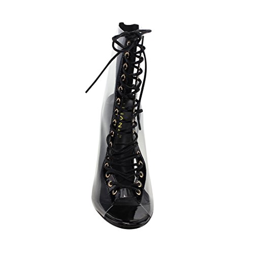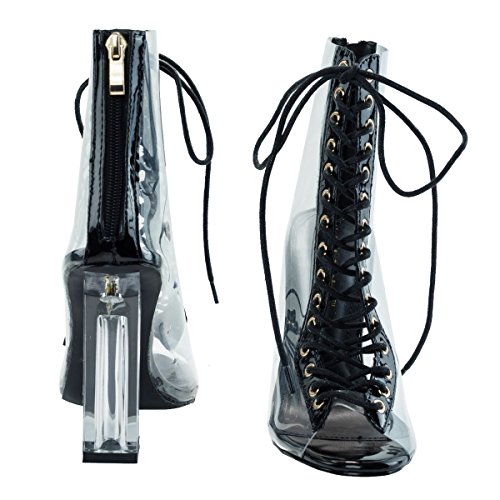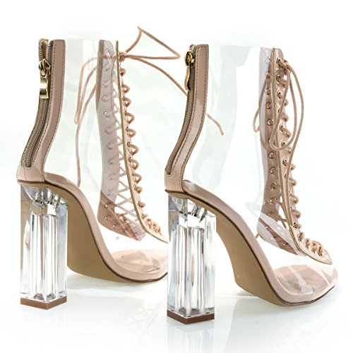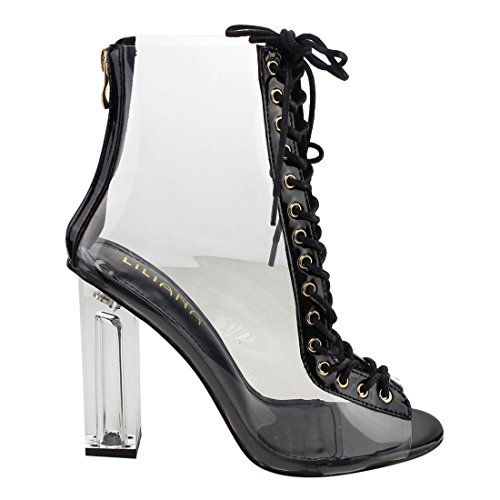 Binding : Apparel Product Description Name - Posh1 Brand: Liliana Colors Available: black, nude(listed as beige), Champagne(listed as gold) Features: These transparent ankle high boots feature a military style corset lace up closure, back zipper, clear see through pvc vamp, translucent perpex block heel, peep toe design and shiny patent trim. Occasion: Clubwear Shoe Type: Ankle Boots Shoe Style: fashion - ankle Inner Lining: pvc Heel Height In Inches - 4 Heel Style - Block Toe Style - peep-toe Platform Height In Inches - .25" Shaft Height In Inches - 5" Circumference Opening - n/a Strap Type - Sole - manmade All Man Made Material. Please note that colors may be different slightly depended on your monitor's quality and calibration, we suggest you look at the photo in at least 3 monitors to be sure. 0