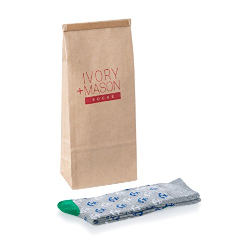 -. Binding : Apparel -. Brand : Ivory + Mason -. ClothingSize : Sock Size 10-13 / Shoe Size 8-13 -. Department : mens -. Feature : BOAT ANCHOR DESIGN - Ivory + Mason provides one of the most unique Men's Boat Anchor socks on the market. Our mission is to create the world's most comofortable pair of socks. Perfect for all year round and great gift for any occasion. These classic men novelty anchor dress socks pair perfectly with a suit and dress shoes or even for a casual evening out in jeans and sneakers. / GUARANTEED COMFORT - Our Boat Anchor novelty socks are made with a cotton blend including polyester and spandex. Cotton socks are beneficial because they absorb moisture from your feet and it evaporates from the novelty socks. We gaurantee your feet will feel comfortable while wearing your dress shoes. The socks contain 80% Cotton, 15% Polyester and 5% Spandex. / VERSATILE SIZING - Anchor designed socks size 10-13 will fit most men's shoes. This usually translates to a man's U.S. shoe size 7-13. (European 42-46, UK 7-12). Our styles can also be worn by women. This usually translates to a woman's U.S. shoe size 9-15. / CUSTOM PACKAGING - All of our socks are nicely packaged so you can also gift our products for any special occasion. Our fun socks makes the best Father's day gift, Christmas gift and Birthday gift for men and women. Excellent for men groomens socks for your wedding.. Our colorful boat anchor socks styles go past your ankle. These colorful socks are the best everyday Boat anchor dress socks for men. They come in a eco-friendly kraft packaging that's been hand stamped locally in Los Angeles, CA. / DESIGNED IN USA - Our boat anchor socks patterns are designed with love in Los Angeles, CA. Our creative director hand designs each pair to provide unique designs and ideal fit. Ivory + Mason has been featured in Oprah Magazine, Allure, OK! Magazine, Refinery29, E News, The View and many more publications and television outlets. -. ProductGroup : Apparel -. ProductTypeName : SOCKSHOSIERY -. Size : Sock: 10-13 / Shoe: 8-13 -. Title : Boat Anchor Socks for Men - Dress Sock - Premium Cotton - Size 8-13 (One Pair)