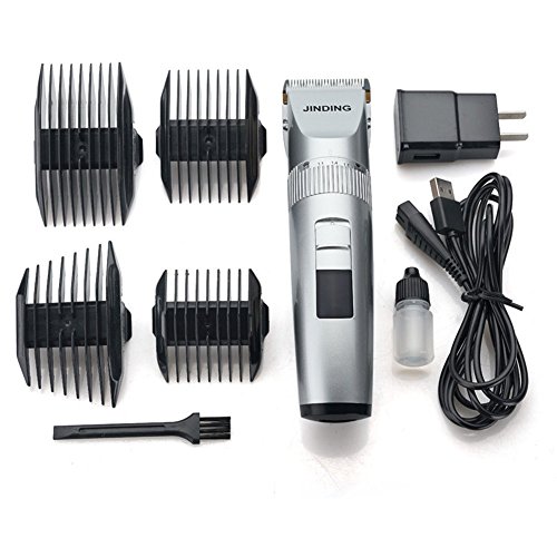 Ladyker Electric Hair Clipper Rechargeable Cordless Mustache Beard Trimmer Grooming Kit Hair Cutting Kit with 4 Combs for Adults and Kids(Silver)
