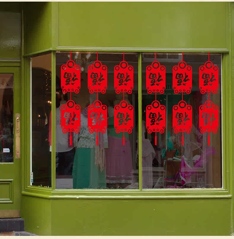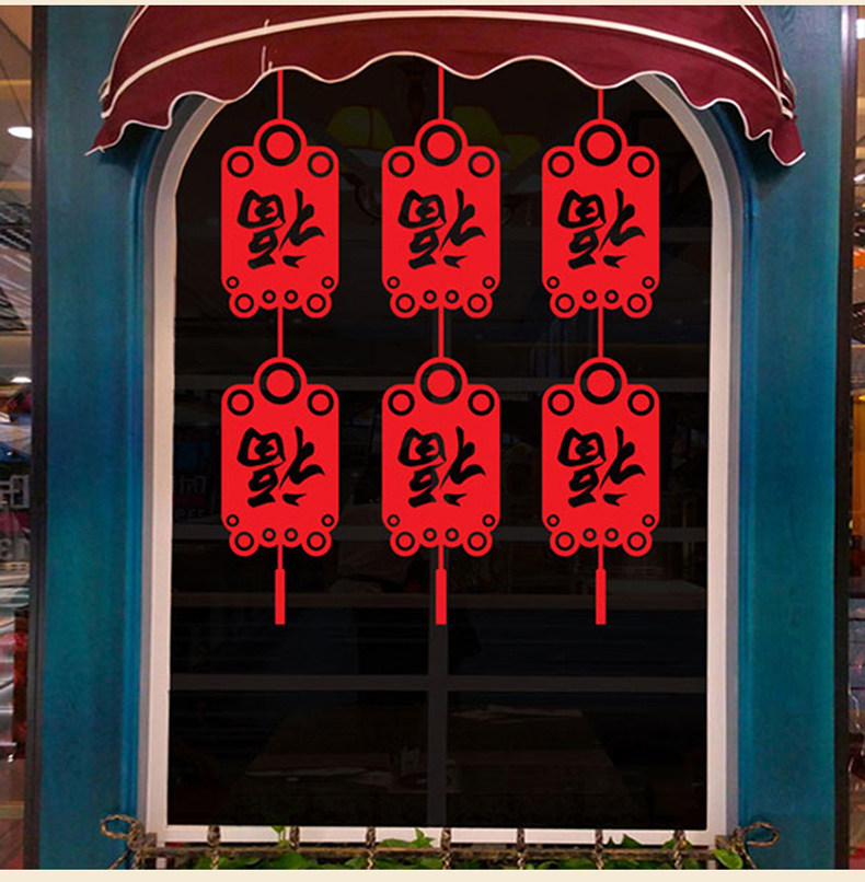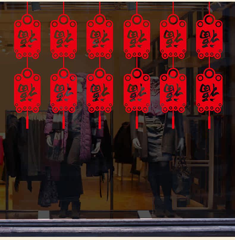 福字灯笼2017元旦春节贴画店铺商场门橱窗花玻璃贴纸过新年装饰品
