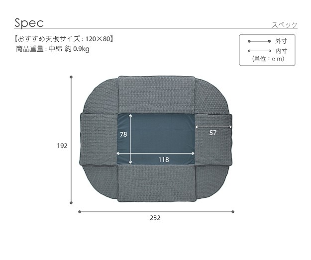 ●サイズ:230x195cm・中綿量約0.9kg