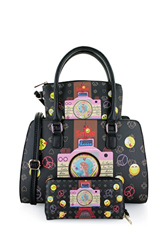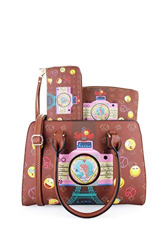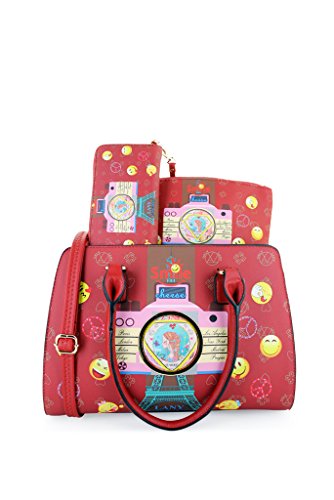 Get ready to put on a huge smile with LANY's "Be Happy" 3-piece satchel. It's a great reminder to always be happy no matter what! 14"W x 10"H x 4.5"D; pouch 7.5"W x 5.5"H x 2.5"D; wallet 8"W x 4"H x 1"D; 2 main zippered opening; Interior zip pockets; Interior slit pockets; Back zippered pocket; Detachable crossbody strap; Gold hardware; Exclusive lining; ImportedFeature