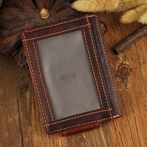 -. Binding : Apparel -. Brand : Le'aokuu -. Color : Brown -. Department : mens -. Feature : Product NO: W1015 / Material: Genuine leather / Size: L11.4cm×W1cm×H8cm (4.48"×0.39"×3.14") Weight: about 0.06kg / Structure: This magnetic money clip has 6 card slots and one ID window. This wallet is slim and thin, Perfect Front Pocket wallet to carry some money and a few cards. / Please be noted: This is genuine leather products, it usually come with the leather smell and it'll fade out as time going. It's also easy to get scratches on the surface, please understand, thanks. -. Model : W1015 -. PackageQuantity : 1 -. ProductGroup : Apparel -. ProductTypeName : ACCESSORY -. Size : Medium -. Title : Le'aokuu Genuine Leather Magnetic Front Pocket Money Clip Slim Wallet Card Case