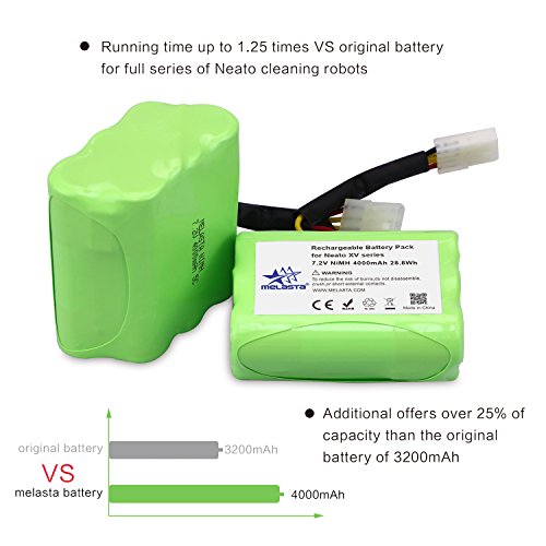 Melasta 2 Pack Super Extend 4000mAh 7.2V NIMH Vacuum Cleaner Replacement Battery for Neato XV-11 XV-12 XV-14 XV-15 XV-21 XV-25 Compatible with Neato 205-0001 945-0006 945-0024 945-0005