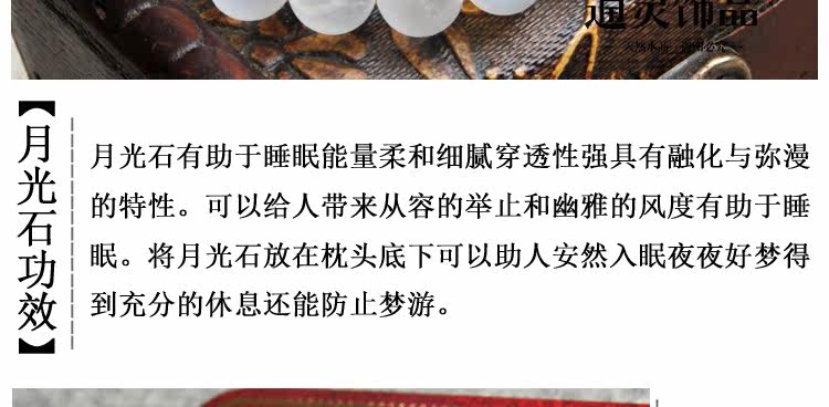 New gems, just as its name implies intuition and the moon are closely linked the moonlight stone at the full moon to wear the best effect can promote people's perception and the supernatural. Emotionally the Moonstone has deep emotions allegedly treatment function can improve the EQ calm mood swings so that the inner calm. Moonstone helps the digestive system and reproductive system help the absorption of nutrients,dissolve toxins removing fluid retention degradation of skin hair eyes andalleviate liver pancreas fleshy organ. It is in production during pregnancybreast-feeding women are especially beneficial.