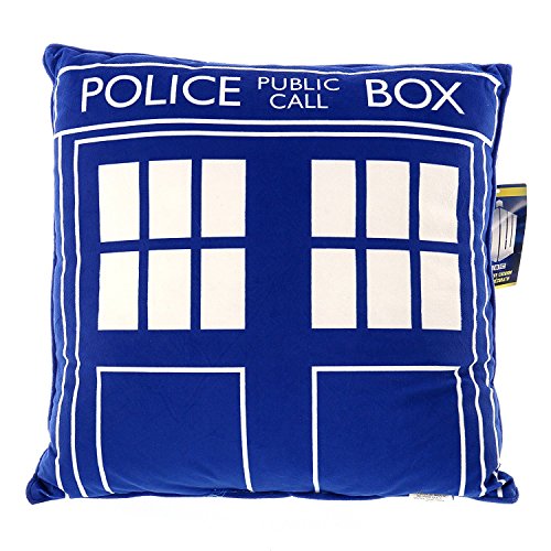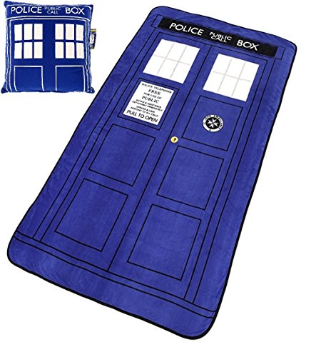 Doctor Who Throw Pillow And Blanket Set - Tardis Style Square Cusion (16" x 16) and Classic Tardis Micro Raschel Throw (50" x 89")