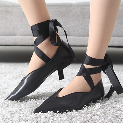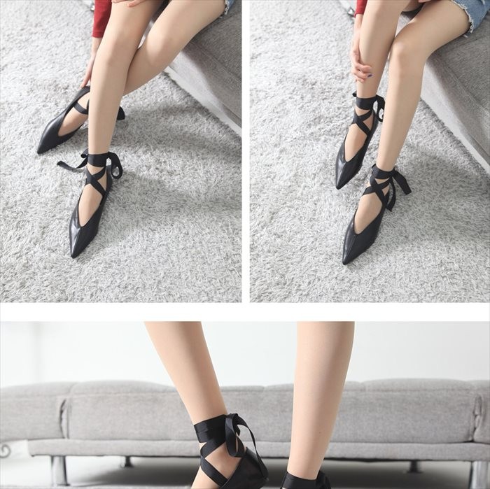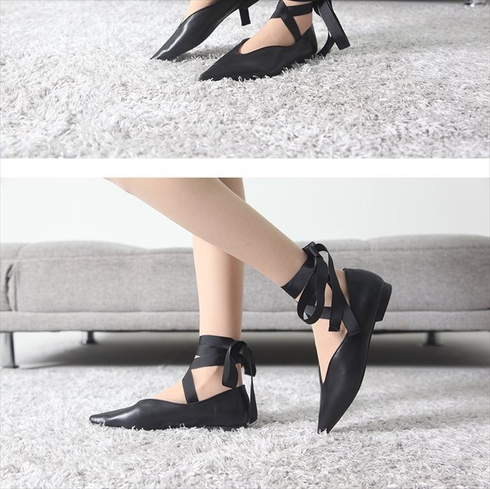商品名:フラットパンプス レディース ペタンコ ポインテッドトゥ レースアップ 2017 秋冬 ファッション 靴 婦人靴