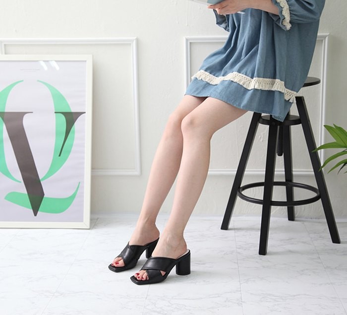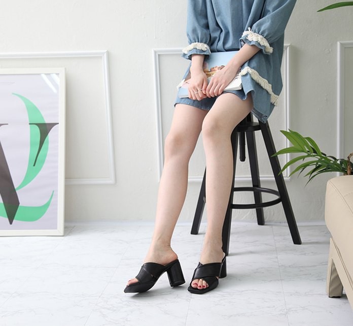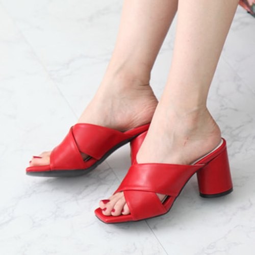 商品名:サンダル レディース ミュール 太ヒール チャンキーヒール クロスストラップ 2018 夏 ファッション 靴 婦人靴
