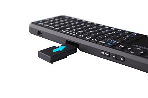 -. Feature : Wireless remote control of most Bluetooth enabled devices, comes with Bluetooth dongle that plugs into any available USB slot. Dongle conveniently slips into side of the remote--keep it safe and secure, never lose it / MULTI-DIRECTIONAL ORIENTATION-Change from Horizontal to Vertical orientation with the press of a button. MULTI-TOUCH TOUCHPAD for screen flips, vertical and horizontal scrolling, right and left mouse clicks and screen manipulation (see picture in Listing for available actions you can do with Multi-Touch). MULTI-LANGUAGE functionality / Backlit QWERTY keyboard, right/left mouse buttons, dedicated directional arrow buttons / Backlit for dark room / Compatible with Google Nexus 7 / Google Android TV / iPhone / Samsung Galaxy S S2 S3 / HTPC / PC / Android 3.0 Tablet / Mac OS and more