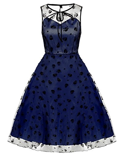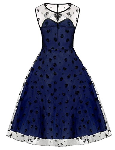 Title : eshion 1950s Retro Women Vintage Prom Sleeveless Mesh Embroidery Long Party Cocktail Dress