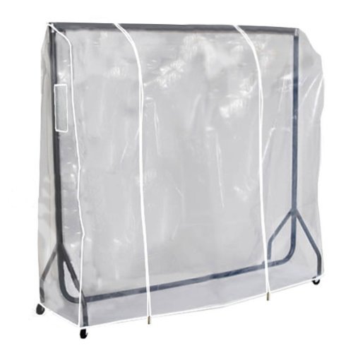 -. Feature : Clear transparent clothes rail cover for rails up to 6 feet wide. (Rail not included) / 2 full lenth, quality zips (Size 5) for quick access. Transparent soft touch PEVA with white trim. / Large useful side id pocket. Fully protects hanging clothes from dirt, dust, fluff and smells. Size: 73 inches wide, 60 inches high, 22 inches deep. / Excellent economical clothes storage. Great when used with other hanging storage items from Hangerworld, a Trusted British Brand. / Brilliant for market retailers and car boots to protect garments from the weather.
