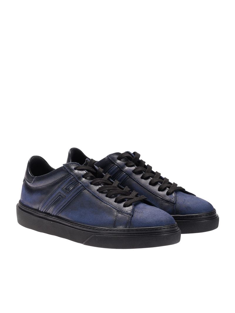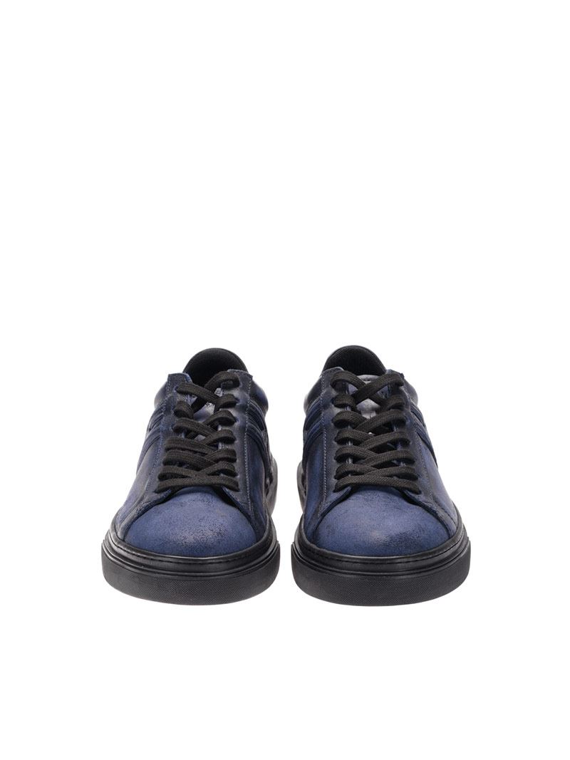 Leather sneakersColor: blueVintage effectLogo detailRubber sole