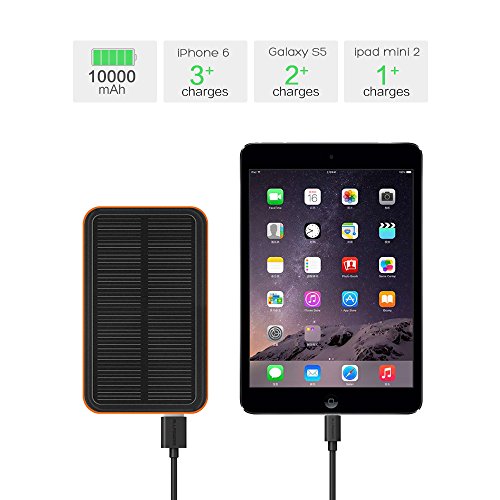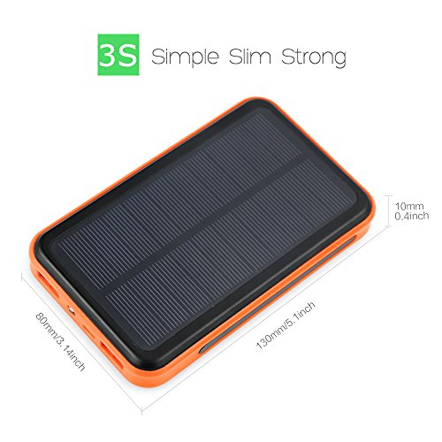 ALLPOWERS™ 10000mAh Solar Battery Charger with iSolar™ Technology for iPhone, iPad Air mini, iPod, Samsung, Android Smart Phones and Tablets, Gopro Camera and other 5V USB devices (Orange)