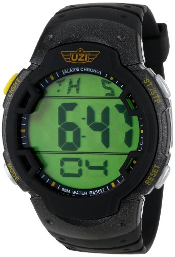 -. Binding : Watch -. Brand : Uzi -. Color : Black -. Department : mens -. EAN : 0024718908946 -. Feature : Water resistant up to 50 meters (165-feet) / Red shock-resistant body ideal for people looking for adventure, sport or just a watch that can take a beating / Oversized digital display for easy and clear reading thanks to the scratch-resistant face display / Comes with an alarm, chronograph, 12/24-hour time, date and a rubber strap / Comes with a 1-year limited warranty -. Label : Uzi -. Manufacturer : Uzi -. Model : Uzi-89-R -. MPN : Uzi-89-R -. NumberOfItems : 1 -. PackageQuantity : 1 -. PartNumber : Uzi-89-R -. ProductGroup : Watch -. ProductTypeName : WATCH -. Publisher : Uzi -. Studio : Uzi -. Title : Uzi Men's Uzi-89-R The Guardian Black Rubber Strap Watch -. UPC : 024718908946