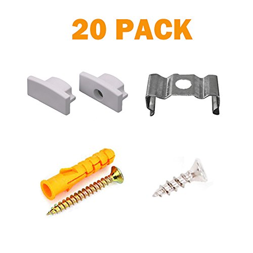 20PCS Metal Mounting Clips and End Caps with Screws for StarlandLed U Shape LED Aluminum Channel (For Asin "B01LL2SLME" "B01N405AZL")