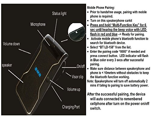 - Title : BMR Bluetooth Visor Handsfree Speakerphone Car kit for iPhone, Samsung, HTC and all other Cellphones