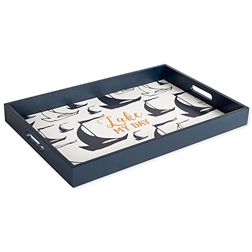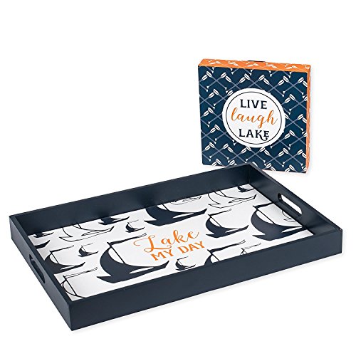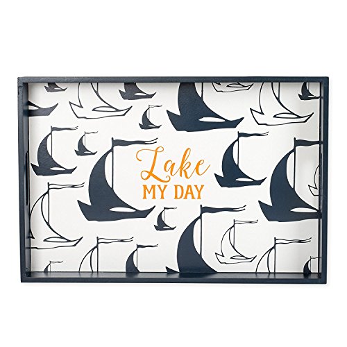 Lake My Day Sailboats Serving Tray and 8 x 8 inch Wood Wall Plaque Sign Set of 2