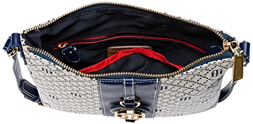 Crossbody bag for women featuring the Tommy Hilfiger women signature flag stripe and gold th hardware. Adjustable crossbody strap with gold hardware details. Top zip closure. Lined nylon interior with wall zip pocket and slip pocket. This Tommy Hilfiger bag is a versatile essentially, the perfect crossbody bag for work or travel. Our timeless Tommy Hilfiger handbag is a stylish addition to your collection of crossbody handbags. 9-5/8 length; 9-1/4 height; 7/8 width; 23-1/2 drop.