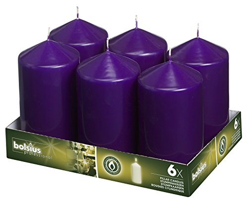 - Bolsius Tray Of 6 Purple Pillar Candles Aprox 3X6 inches
