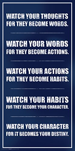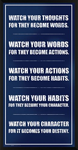 This poster features a quote in stylish typography which reads "Watch your thoughts for they become words. Watch your words for they become actions. Watch your actions for they become habits. Watch your habits for they become your character. Watch your character for it becomes your destiny.".