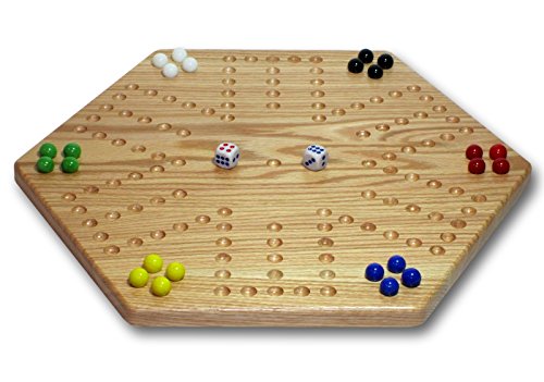 -. Feature : Quality Crafted by Mennonite Craftsmen in Holmes County, Ohio. / Solid Red Oak Hardwood 16" Wide Hexagon Board. / Double Sided - Plays up to 4 players on one side and up to 6 on the other. / Complete with Game Board, Marbles, Dice, and Instructions. / A Wonderful Family Game with Risk, Competition, and Aggravation!