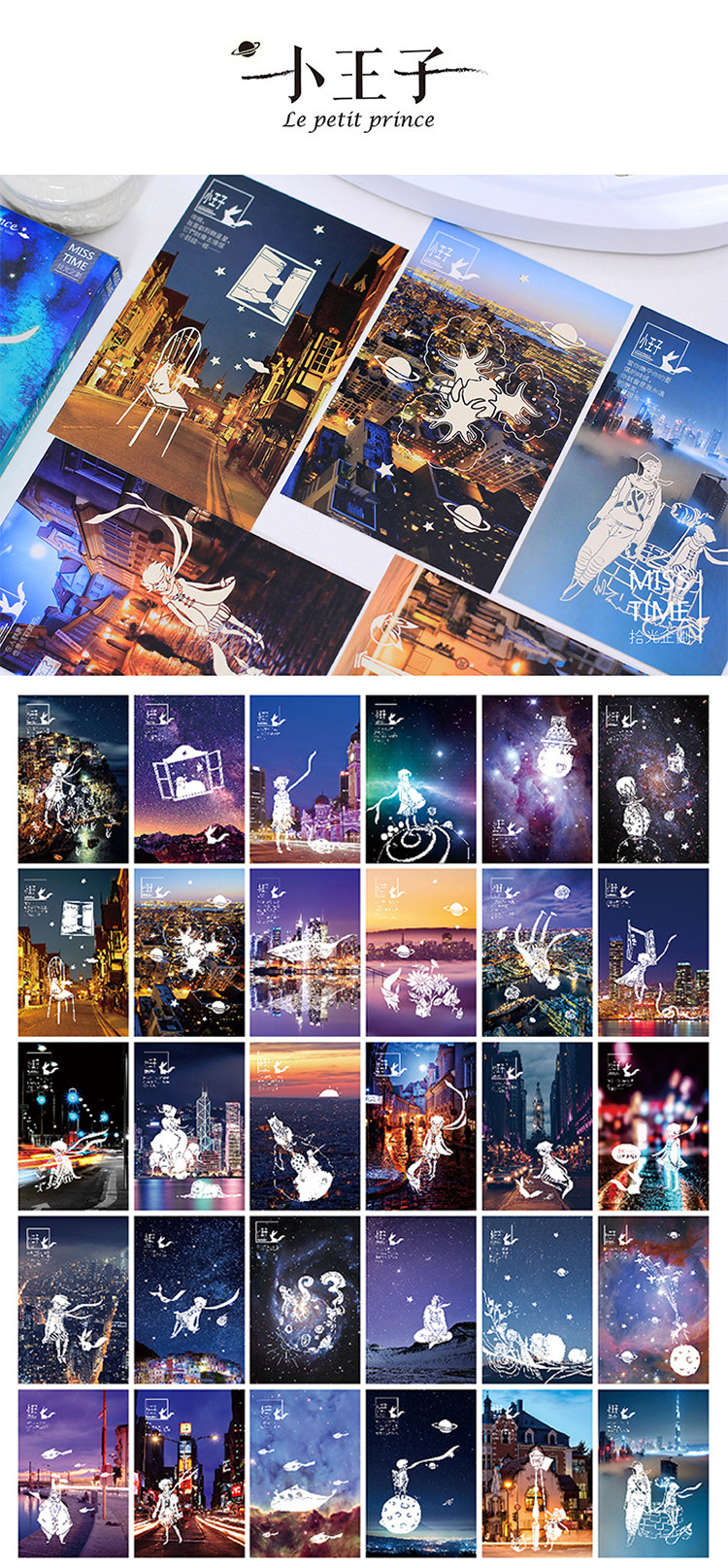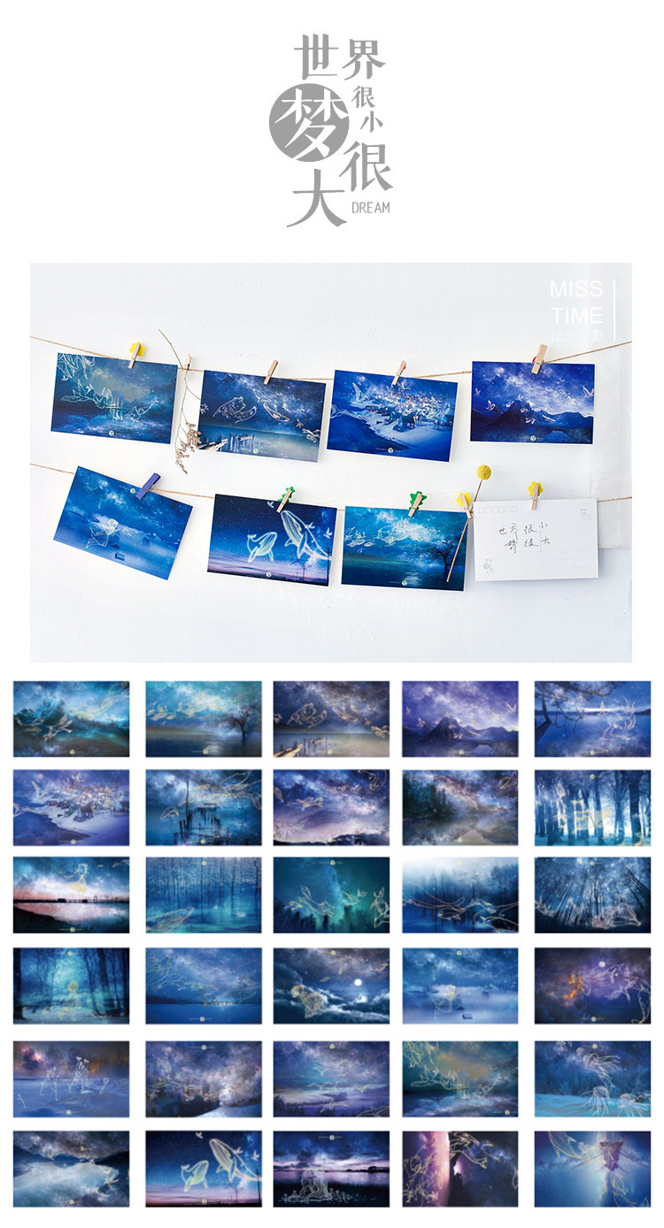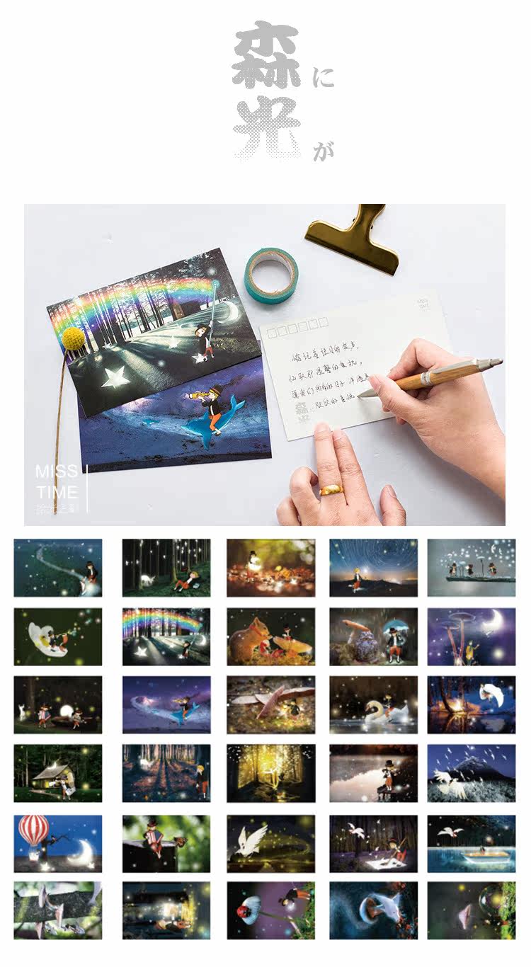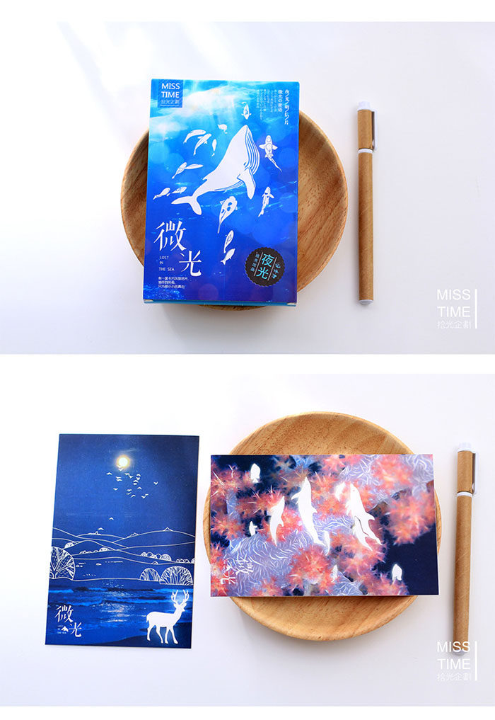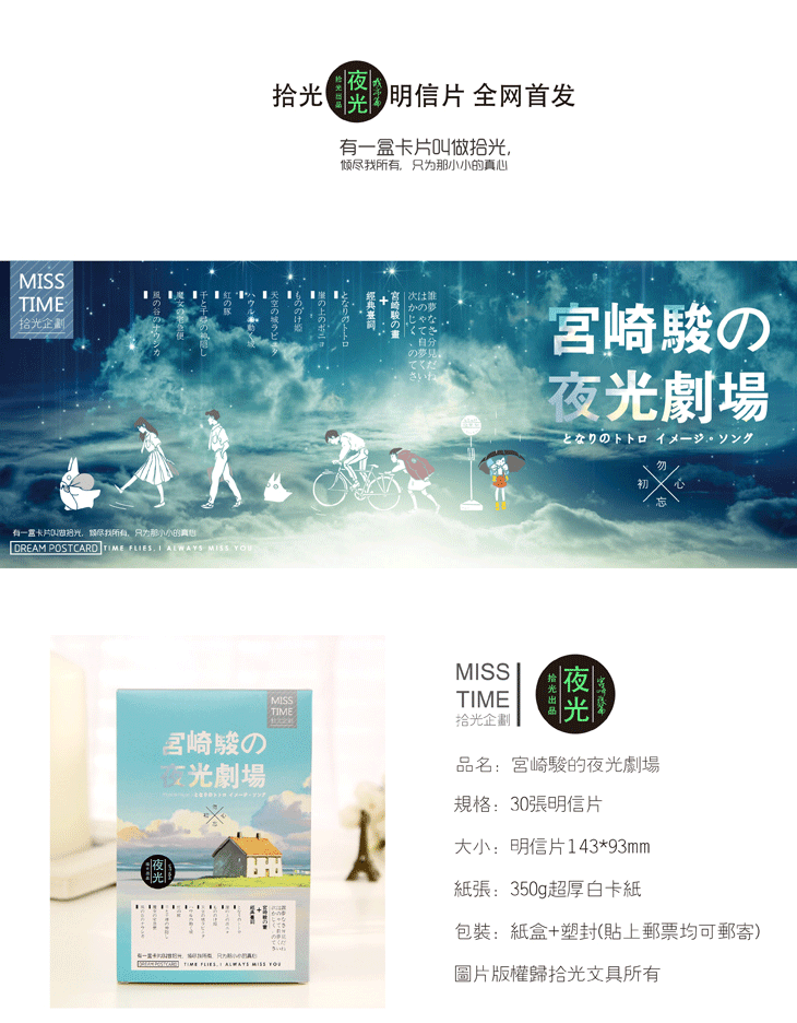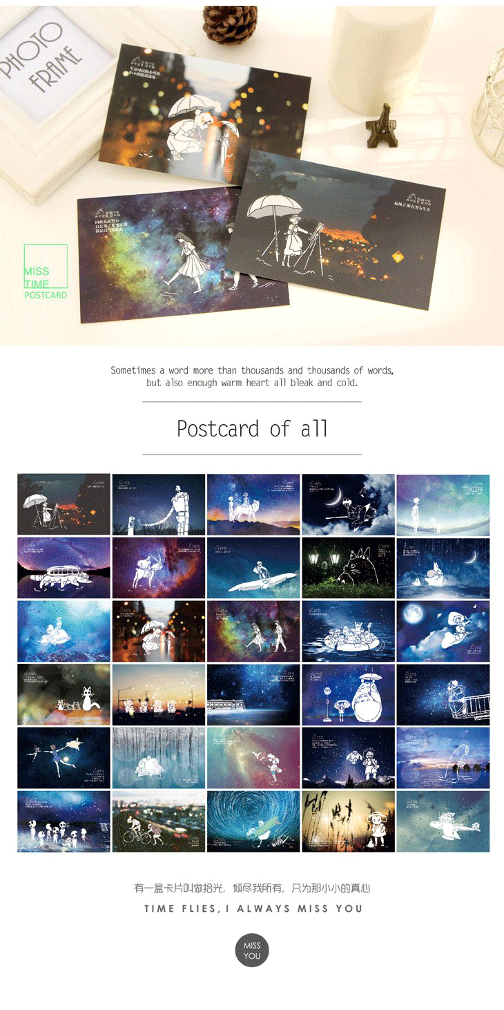 夜光明信片手绘卡通宫崎骏动漫创意卡片生日圣诞贺卡30张