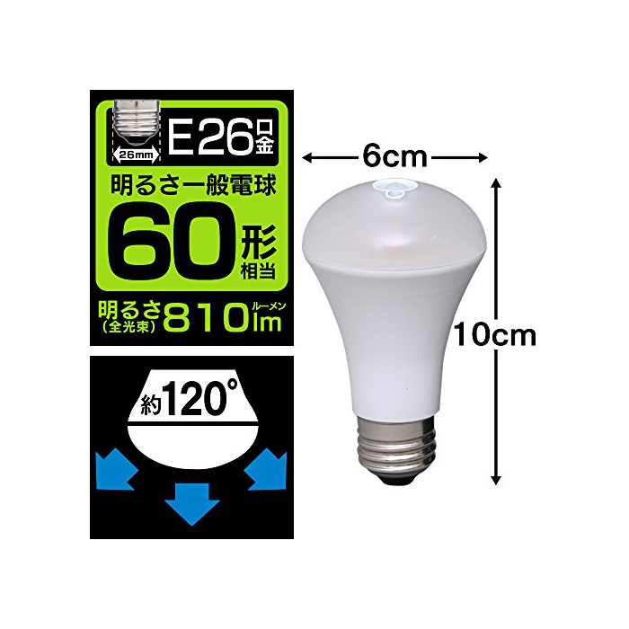 원본상품명: アイリスオヤマ LED電球 人感センサ付 E26口金